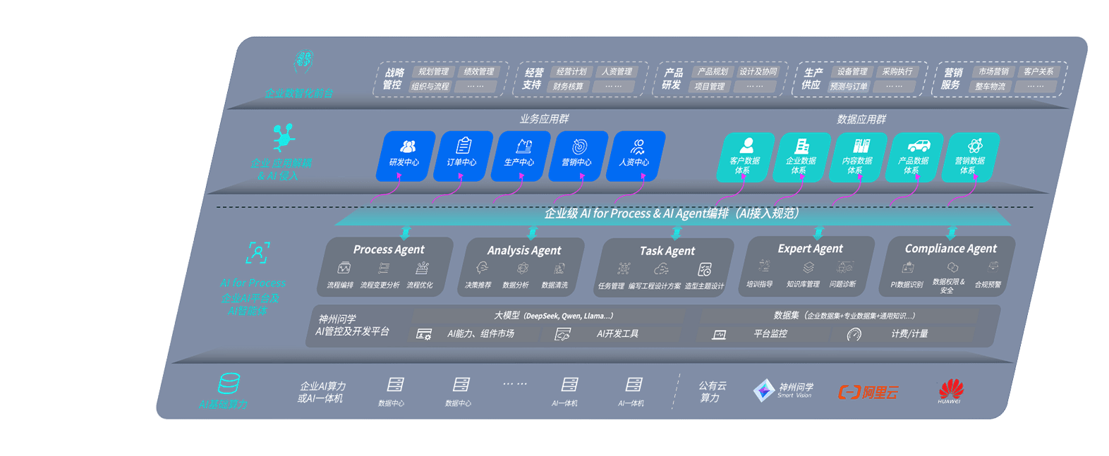 端到端的一站式AI工作空间深度融合了从企业战略规划到日常经营的全流程业务板块,,定向解决车企内部领域多、、、、部门多、、、、链条长、、、场景碎片化等难题,,,支持车企快速构建以AI为核心的生产力写作体系,,,,实现任务执行与AI能力的无缝集成与交互